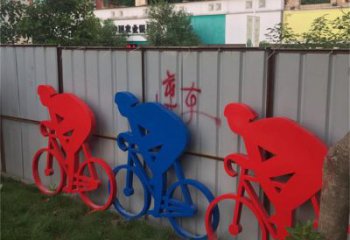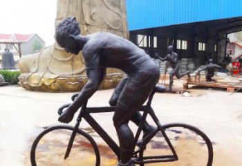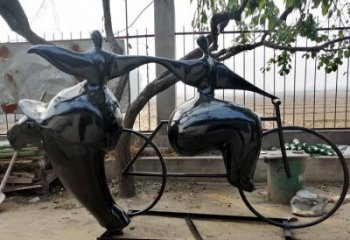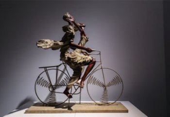 仿銅騎自行車抽象人物玻璃鋼雕塑