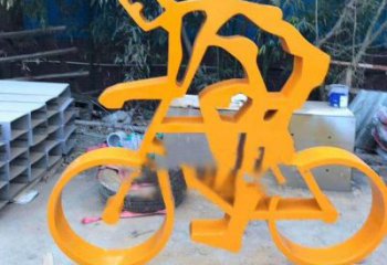大型抽象不銹鋼仿銅人物騎自行車雕塑