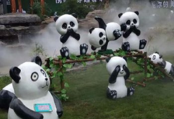 玻璃鋼熊貓卡通童趣雕塑擺件