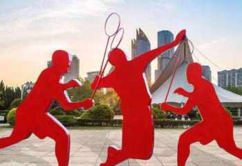 不銹鋼抽象剪影打羽毛球鐵藝剪影運動人物擺件雕塑