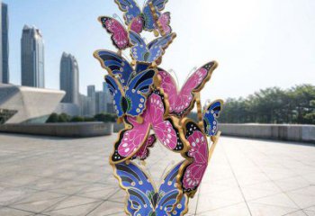 園林戶外不銹鋼彩繪群飛的蝴蝶雕塑
