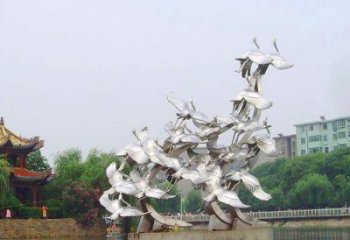 不銹鋼仿銅公園池塘雕塑仙鶴是一種抽象的藝術品,用來裝飾公園池塘,給人以恬靜、深遠的美感。其外形抽象而又不失細致,仙鶴仿銅雕塑采用優質的不銹鋼材料,具有良好的耐腐蝕性,不易受外界環境的影響,可以長期保持一定的質量和美觀度。