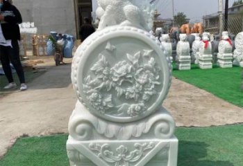 漢白玉浮雕小象抱鼓石擺件