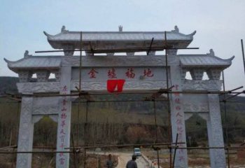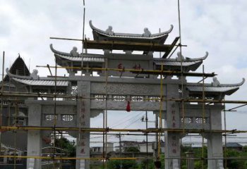 精美石頭雕塑,點(diǎn)綴村莊入口大型牌坊門樓