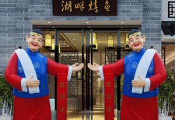 玻璃鋼迎賓卡通公仔雕塑是由某飯店特別研發的一款裝飾品,它位于飯店門前,以玻璃鋼制成,配以各種卡通公仔雕塑,給消費者以一種溫馨的歡迎氛圍。
