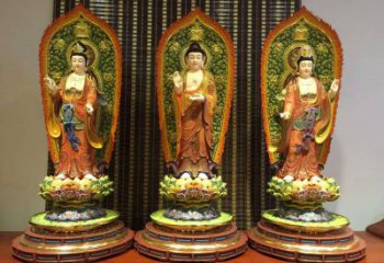 玻璃鋼彩繪神佛三圣雕塑,為景區大型景觀裝飾品