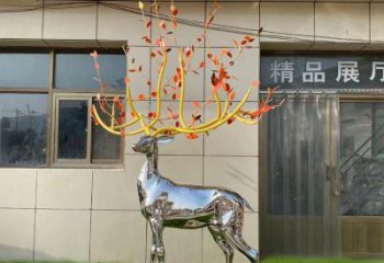 大型不銹鋼創意鏤空梅花鹿照明裝置