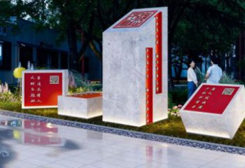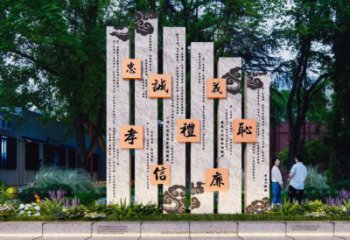 該景觀雕塑巧妙融合實用與文化傳承。采用石材打造坐凳,石材質樸且富有質感,契合景觀雕塑自然、沉穩的氣質,既為人們提供休憩之處,又成為公共空間的藝術點綴。將 “禮”“讓”“義” 等代表中華傳統美德的文字,以發光形式呈現于石材坐凳之上,使坐凳不再只是簡單的休憩設施,更成為傳遞文化精神的載體。當人們落座于這些帶有美德文字的坐凳,既能在舒適中感受景觀之美,又能潛移默化地接受傳統美德的熏陶,讓文化傳播與日常休憩場景有機結合,營造出富有詩意與人文關懷的公共空間氛圍。