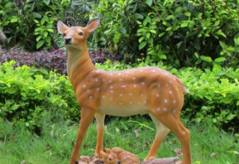 校園仿銅玻璃鋼鹿雕塑是一種由玻璃鋼材料制作的雕塑,外觀表面仿銅色,雕塑主體為一只站立的鹿,充滿了生機與活力。