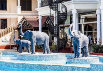 草坪大象雕塑是用各種可塑材料或可雕、可刻的硬質材料,所雕刻出來的石雕大象的形象。石雕大象造型逼真,大象雕塑圓潤細膩,紋式流暢灑脫。大象雕塑是建筑上常常使用的雕刻工藝品,在寺廟,佛塔,橋梁,辦公大樓,園林及陵墓上等都會看到石雕大象。一般情況下草坪大象雕塑都是成雙成對的,當然必須是一雌一雄的。