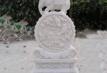 天然石材漢白玉浮雕花開(kāi)富貴招財(cái)抱鼓石